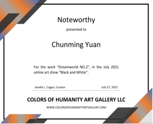 公司美术系副教授原春鸣油画作品《老街印象之二》入选2021年第十一届国际在线公开大赛(2021年8月1日—8月31日,),并获得特别优秀奖。油画作品《老街印象三》入选第三届风景国际在线大赛,并获得荣誉奖。版画作品《梦境2》、《梦境5》入选2021年美国单色(黑白)在线绘画大赛(2021年7月1日—7月31日),并获得特别优秀奖。主办方在线上进行了学术研讨,多家媒体对此次展览进行报道,展览倡导探索性,寻找艺术创作的新可能,以求艺术形式的多元化发展。展览云集世界各地的艺术家,作品具有较高的学术水准以及专家委员会认可的艺术才华和潜力。观众可以从中感受到当代艺术的最新趋势,当今艺术氛围是在一个文化多样、媒介多样、创作手法多样、技术多样的环境中不断发展变化进步的,这也需要艺术家关注时代并且顺应潮流,创作出更新更好的作品。