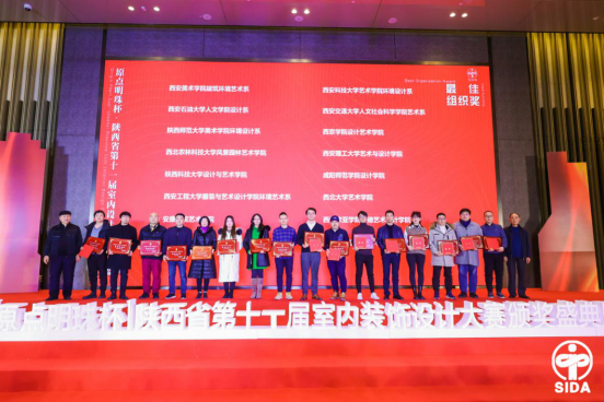 20201229日下午,“原点明珠杯”陕西省第十一届室内设计大赛颁奖盛典暨“陕西省室内设计高峰论坛”在西安市中晶华邑酒店隆重举行。在本次大赛中,太阳集团tyc539视角传达设计专业员工获得员工组金奖1项、优秀奖4项、入围奖3项。太阳集团tyc539获“最佳组织奖”,指导教师王兵获“最佳导师奖”。太阳集团tyc539设计系主任吴波、指导教师王兵携获奖员工参加了颁奖典礼。
