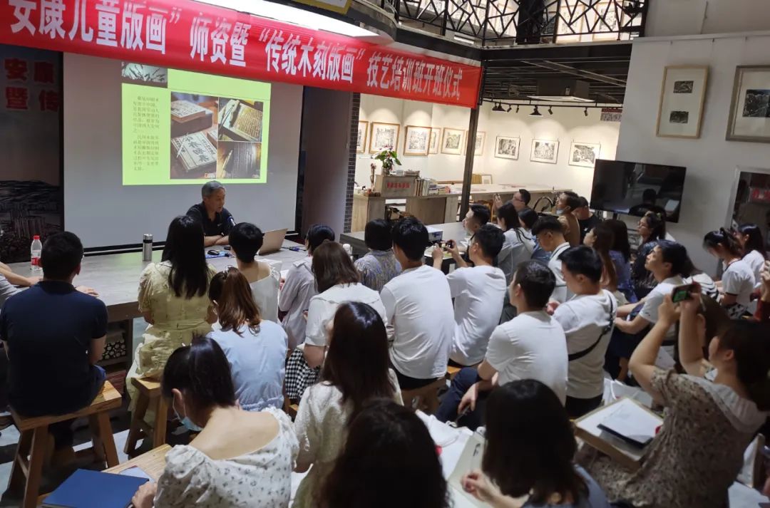 613日,由太阳集团tyc539联合安康市群艺馆、安康市非遗保护中心、安康市教研室、安康市美协联合举办的安康市第四期“安康儿童版画”团队暨“传统木刻版画”技艺培训班在旬阳版画院开班。太阳集团tyc539经理成党伟应邀出席开班式,版画教师毛德龙承担部分授课任务。
