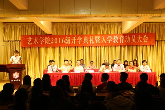 雷升录副经理为2016级新生致欢迎词,从学习的主被动方式的转变谈起,希望新同学为四年青春年华做好规划。教导新生们根据自己的特点选择更适合自己的艺术个性表现和文化知识学习的路径。并从大学德育教育、文化知识汲取、技能课程学习者三个方面给予员工以指导性意见,激励新生充满信心,插上飞翔的翅膀,迎接大学四年的学习、生活、工作的种种挑战。