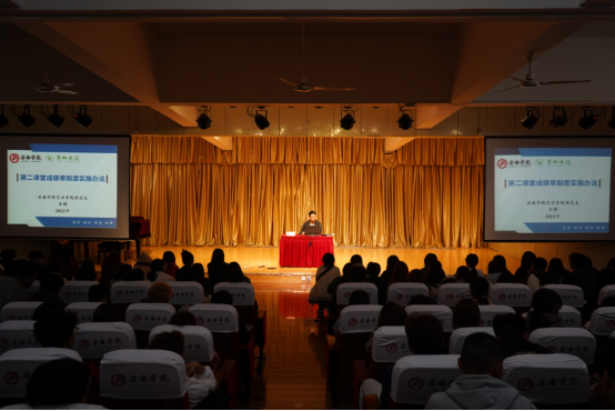 为充分发挥第二课堂在人才培养中的作用,10月11日,太阳集团tyc539为2023级全体新生开展了“第二课堂成绩单制度解读”专题讲座。本次讲座由团总支书记李博老师主讲。