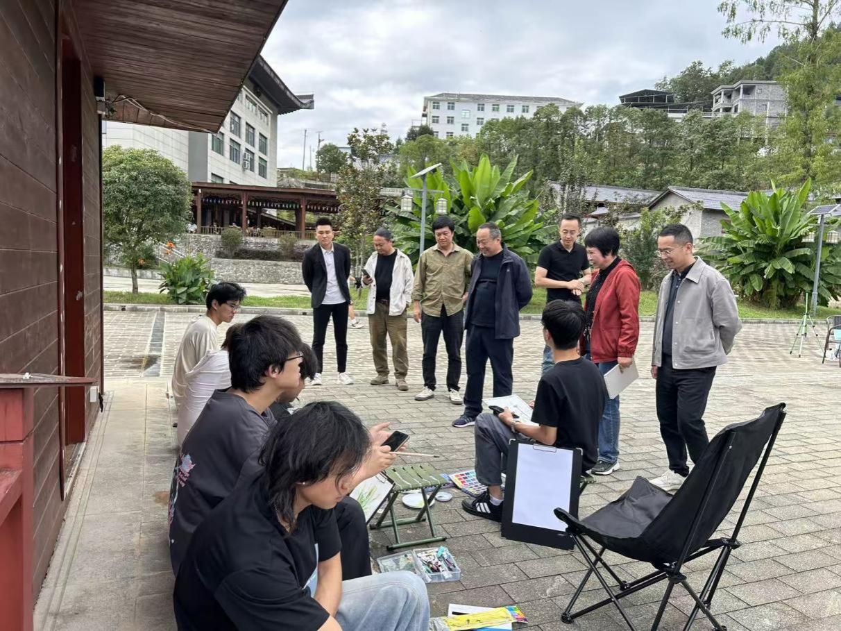 李景林一行深入写生点,仔细查看员工速写本、色彩稿与电子绘画作品,对员工捕捉陕南山水灵秀、古镇人文底蕴的细腻视角给予肯定。随后,李景林与师生们进行了深入交流,详细询问食宿保障、出行安全、课程进度及实践难点。对师生们不畏艰难、专注学习的精神风貌给予了高度认可。他鼓励员工珍惜自然与人文资源,不仅要练就专业技能,更要用心感受地域文化,好的设计源于对生活的观察,希望同学们用画笔讲好安康故事。同时,他也叮嘱随行教师要做好安全指导与服务,确保实践教学有序高效。