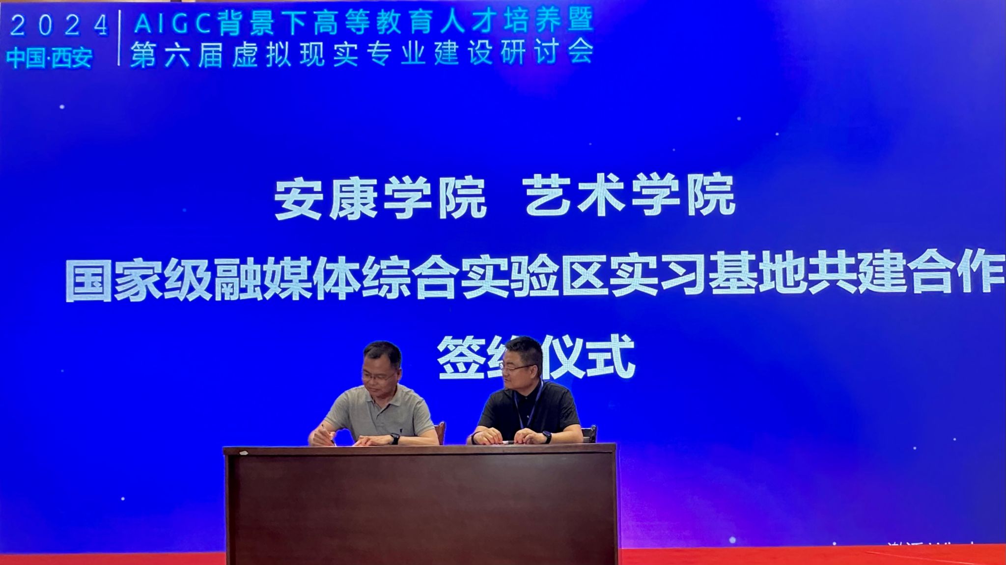 会议以“AIGC技术背景下高等教育人才培养”为主题,研讨虚拟现实技术专业课程体系、专业课程教学、实验教学及综合实践训练等相关建设工作。在会议上进行了太阳集团tyc539国家级融媒体综合实验区实习基地合作共建协议签约仪式,成党伟代表公司签约。