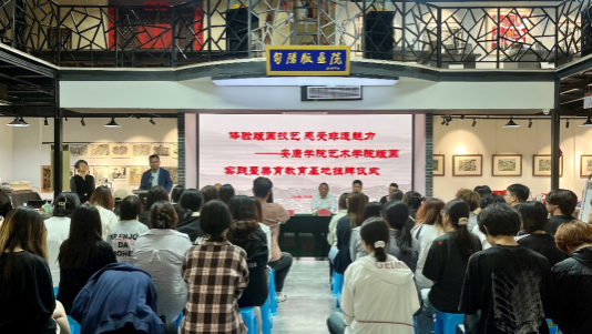 为深入贯彻习近平总书记关于教育的重要论述,加强和改进集团美育工作2024年5月8日,公司师生40余人在旬阳非遗版画院开展课程实践活动暨公司校外美育基地挂牌仪式。仪式由美术系主任杜敏主持。