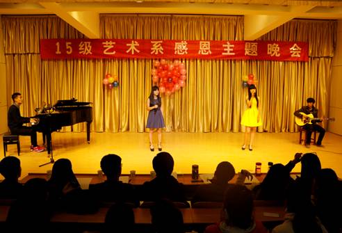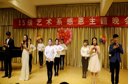 感恩是中华民族的传统美德,是一个人的基本品德。伴随着张洁等同学带来的古筝合奏《战台风》晚会正式拉开序幕。随后,李达同学带来的诗朗诵《感恩之音》使在场的每一位同学深受启发,陷入无尽的思考,二胡合奏《祝福》,手语操《感恩的心》,小品《回家过年》,歌曲《送给妈妈的茉莉花》、《北京东路的日子》、《爱与希望》、《同手同脚》等精彩的节目将晚会推向高潮。2015级音乐学专业同学充分结合自身专业特色,用自己最美的一面诠释着对爱,对感恩的理解,使同学们的心灵受到启迪。最后,冯书记对此次活动做了总结,肯定了此次感恩晚会的意义以及同学们在这次活动中表现出的积极性和创新性,并指出感恩无处不在,希望同学们从身边的小事做起,对自己的家人、老师、同学、舍友都应存感恩之心,让我们的生活处处充满阳光。