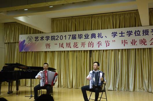 手风琴二重奏《微笑波尔卡》,在炎炎夏日里把全院师生对毕业生的祝福都融入到甜美的微笑中。