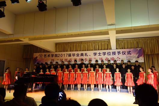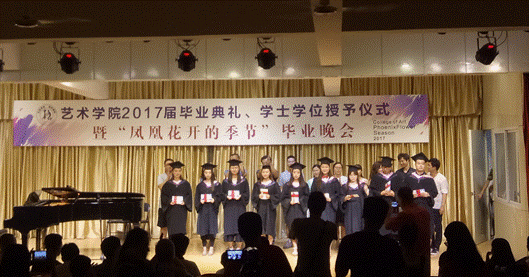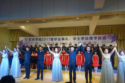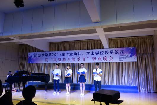 院员工会干部原创的诗朗诵《凤凰花开的路口》,勾起了2017届毕业生对四年生活的回忆,四年前,大家相遇相知,温暖胸膛、怀揣梦想;四年里,大家共同努力,激越青春、欢乐成长;四年后,即将天各一方,各自打造梦想的天堂,不要让泪水打湿容颜,火热激情即将绽放当晚,让我们的心于空中翱翔,在青春的蓬勃下生长,在岁月流光中温暖启航。