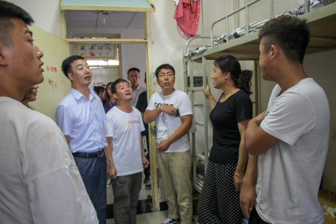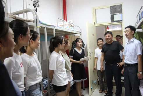 9月2日下午,公司党总支书记王辉老师,经理杨哲老师,学工办主任刘泽桢老师,辅导员魏麟老师,薛涛老师以及随行的员工会成员对18级新生宿舍进行了看望了2018级新生。 在新生宿舍里,新生们以朝气蓬勃的面貌和热烈的掌声欢迎公司领导和老师的到来,师生之间就生活中的问题进行交流。