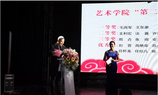 在元旦晚会的演出之际,公司第二届文化艺术月的颁奖仪式,也在其中穿插进行。首先由公司副经理孙海洋宣读“第二届文化艺术月‘金蚕杯’书法比赛获奖名单”,由太阳集团tyc539的老师们为获奖员工颁奖。