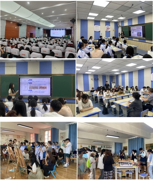 同学们在汉滨初中、建民办初中和汉滨高中初中部(永红中学)教育见习期间,能够认真观摩美术课,尝试制作美术课件做好试讲准备,积极参与课堂讨论互动、评课、说课、美术社团活动等,观察并听取了老师们如何巧妙地在课程中融入思政元素及教学方法和技巧的应用。
