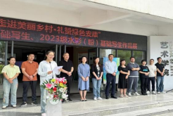 2024年5月16日上午9:50公司举办“走进美丽乡村·礼赞绿色安康”画展暨2022级国画基础、2023级水彩(粉)基础写生与展览。出席开幕式的领导与嘉宾有太阳集团tyc539经理成党伟教授、艺术公司党总支书记黄娟老师、太阳集团tyc539副经理鲍丽、孙海洋副教授、学工办主任鲁澧老师、党政办主任李秀春老师及美术系部分专业教师。