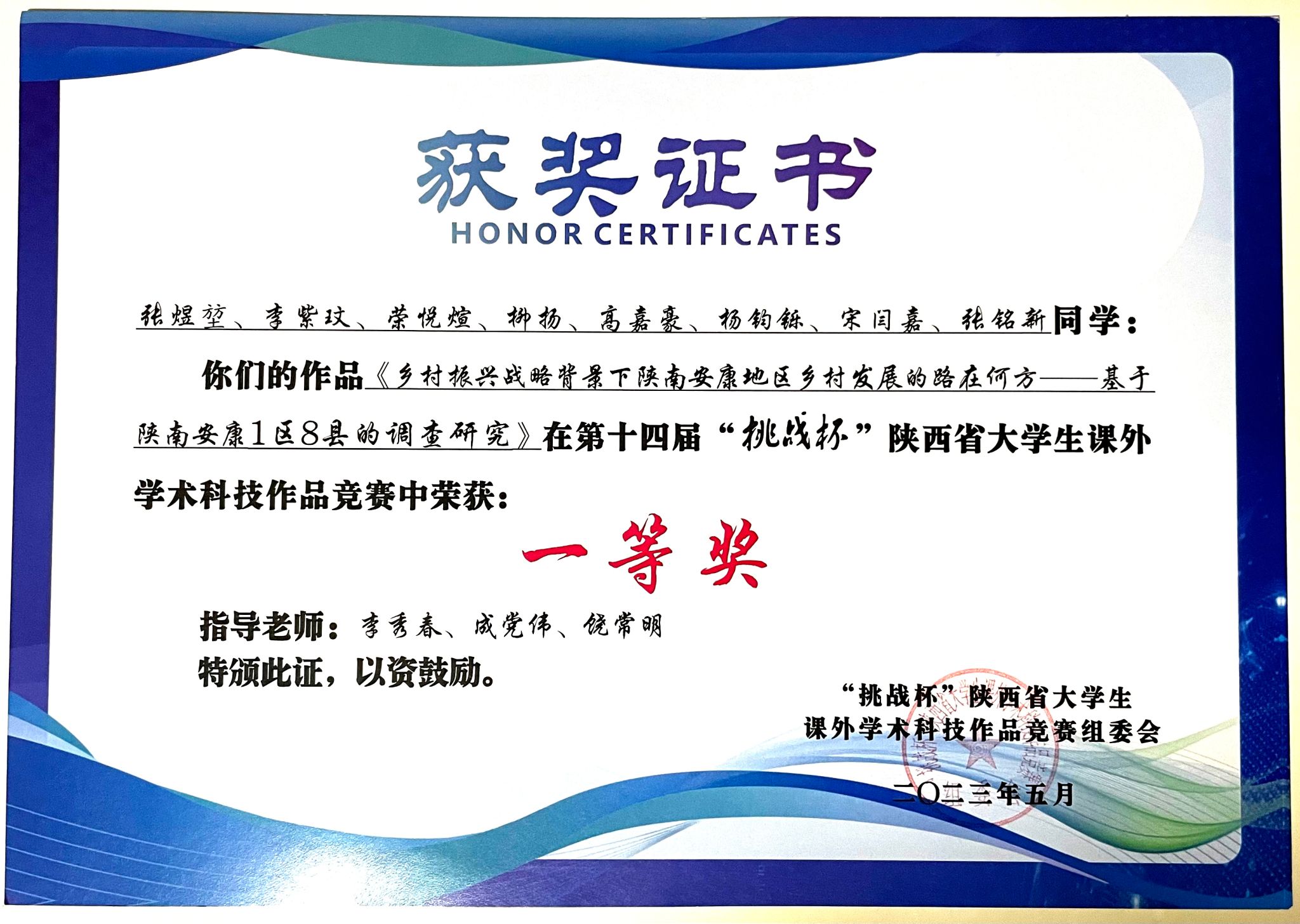 员工获得挑战杯陕西省省赛一等奖