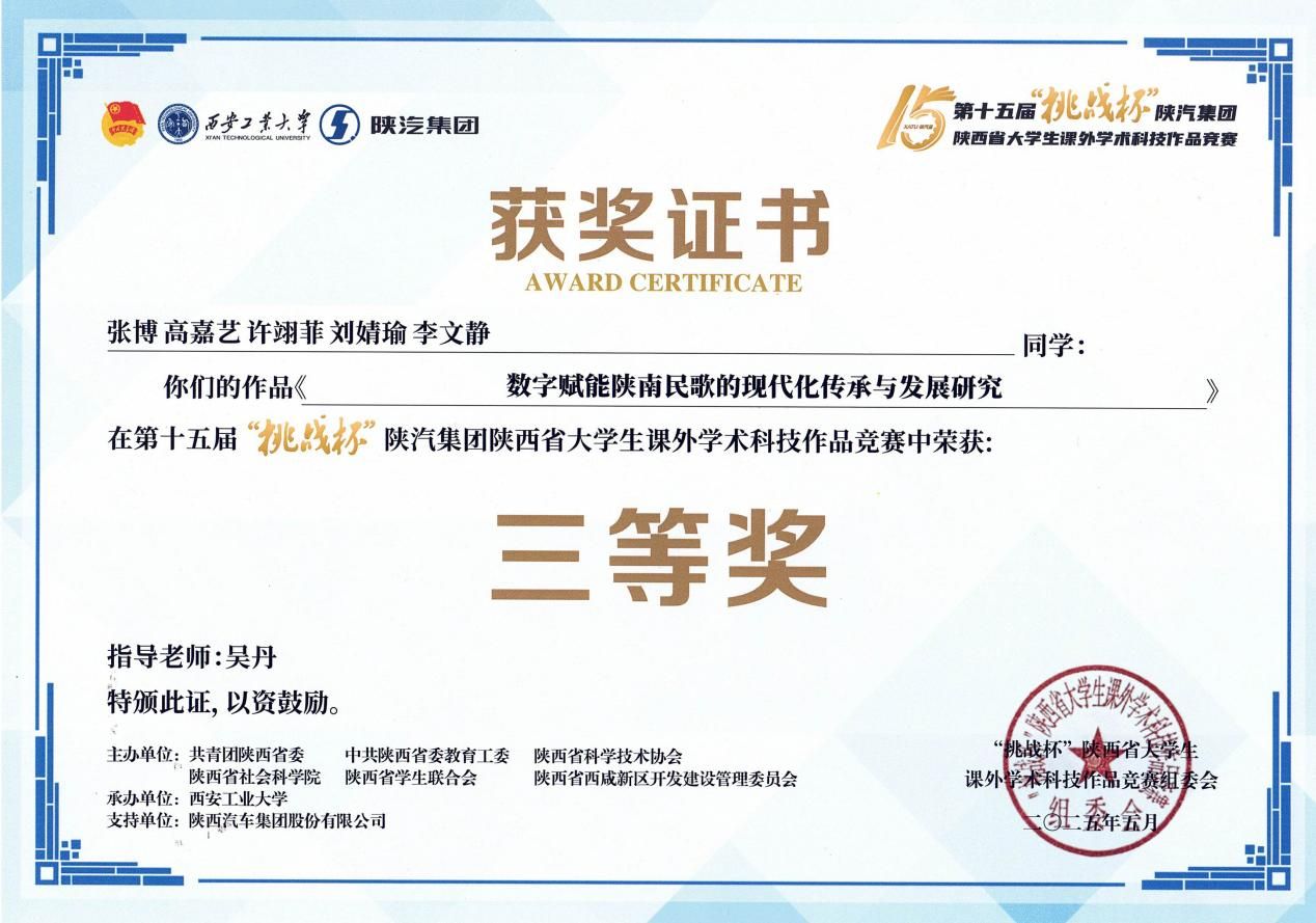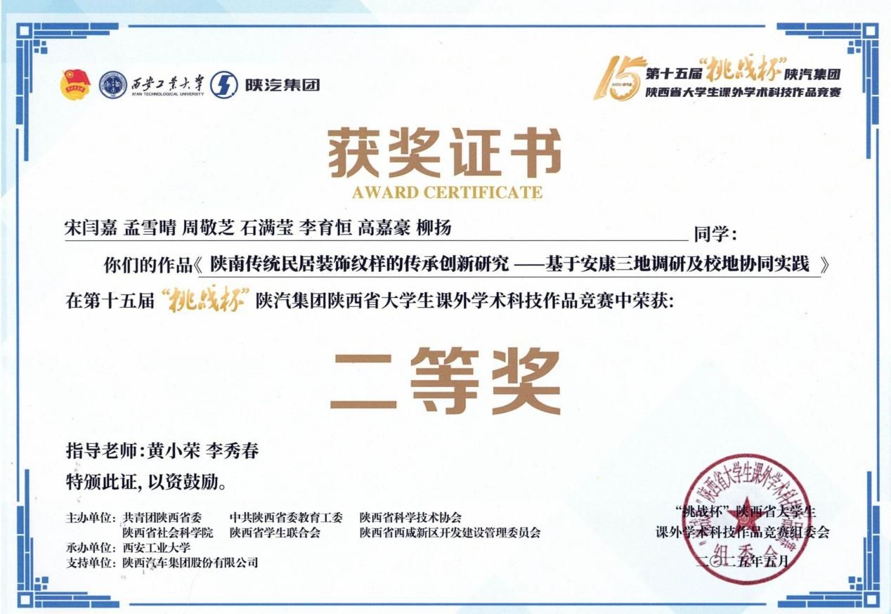 近日,由团省委、省委教育工委、省科协、省社科院、省学联与省西咸新区管委会联合主办、西安工业大学承办的第十五届“挑战杯”陕汽集团陕西省老员工课外学术科技作品竞赛落下帷幕。我院黄小荣、李秀春和吴丹老师指导的宋闫嘉、张博等员工在竞赛中表现优异,分别斩获二等奖、三等奖,展现出扎实的学术素养与创新能力。