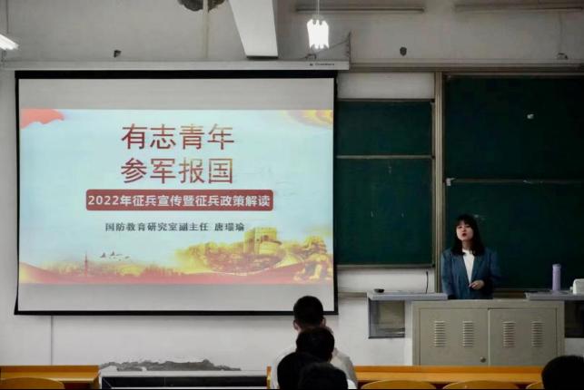 唐璟瑜以“有志青年,参军报国”为主题,从携笔从戎无上光荣、应征入伍体检标准、应征入伍相关政策、保留学籍及复学手续办理等方面详细解读了应征入伍相关事项,并重点讲解了同学们关心的公司在读生尤其是毕业生入伍的国家优惠政策,鼓励同学们积极响应国家号召,踊跃报名参兵入伍,携笔从戎,报效祖国,到火热的军营放飞梦想,到百炼成钢的熔炉中磨砺青春。
