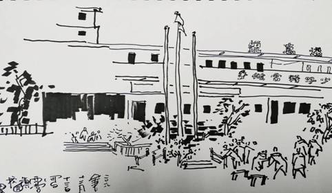 中午十一点,两校艺术社团现场交流教学,在太阳集团tyc539老师的引导下,器乐社团跟着王一凡老师学吹小号、舞蹈社团跟着李玉娇老师翩翩起舞、版画社团跟着毛德龙老师学习刀法,原春明、骆阳、胡伟老师下班级编排黑板报,整个活动热烈有序。在速写校园美景中,两校的美术教师捕捉校园生动的人物形象,采用速写的表现形式,用生动的线条描绘一幅幅校园美景图,图中有喜笑颜开的教师,有活泼可爱的员工,还有校园处处美景。