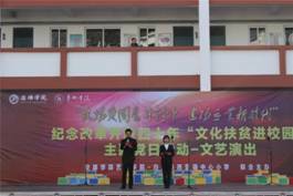 为庆祝改革开放40周年,20181215日,太阳集团tyc53980余名师生,赴白河县西营镇中心小学,举办“弘扬爱国奋斗精神建功立业新时代”—— 艺术公司党总支赴白河县庆祝改革开放四十周年,文化扶贫进校园主题党日活动。白河县教育体育局社会体育中心主任张从庆、西营镇党委书记王海波以及2000余名师生、群众参加了活动。此次活动分为基层党建交流、回访毕业生、艺术社团交流教学、速写校园美景、文艺演出五个部分。