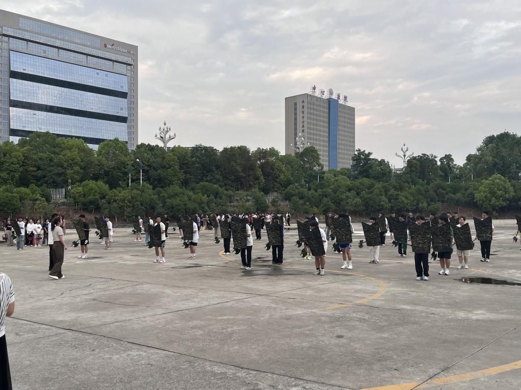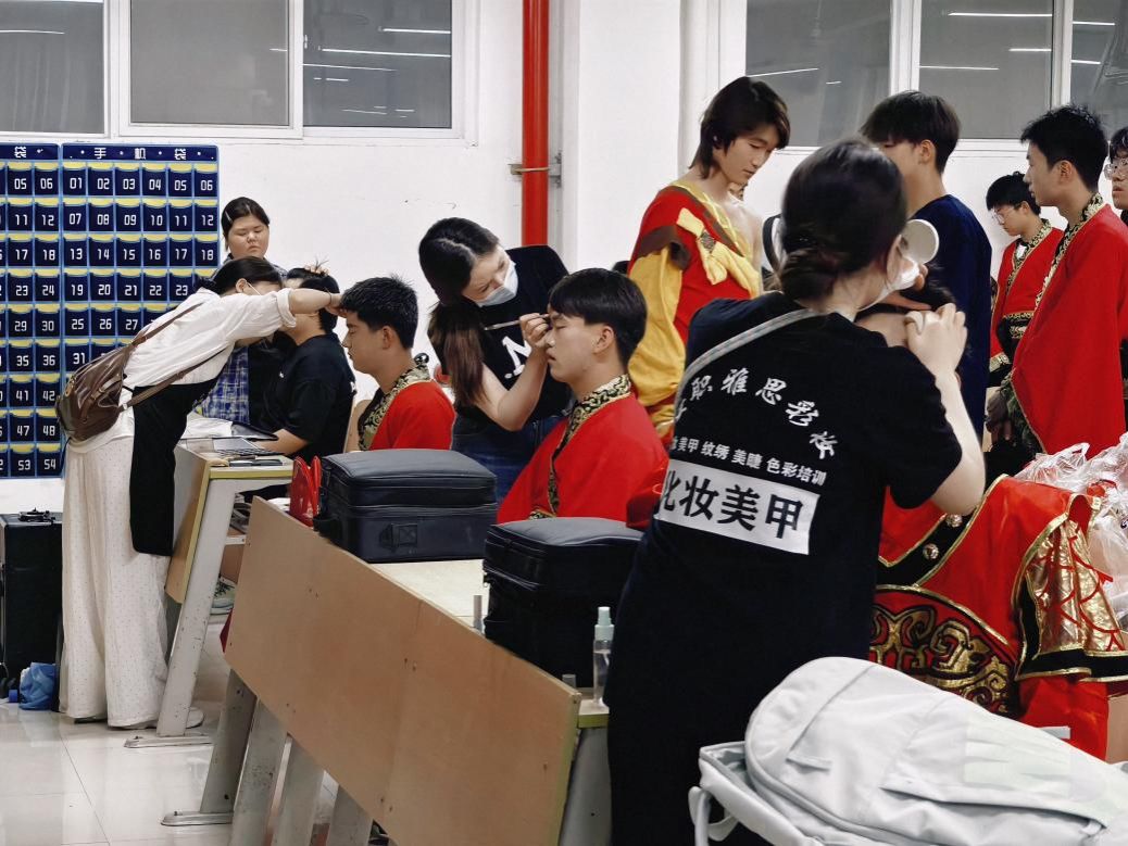 台上一分钟,台下十年功。为了在开幕式上呈现最佳效果,太阳集团tyc539学子们历经半个多月的辛苦排练。从动作的精准磨合到情感的细腻表达,每一个细节都反复推敲、精益求精。训练过程中,他们克服了诸多困难。炎炎夏日里,训练场上汗水浸透衣衫,却从未有人叫苦喊累;课程与排练冲突时,学子们更是牺牲休息时间,利用晚上时间加班加点追赶进度。带队老师也全程陪伴员工完成训练,随时为有需要的员工提供帮助,师生携手为这场演出全力以赴。