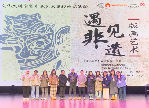 近日,公司青年教师毛德龙带领美术学部分员工赴安康汉江大剧院做非遗版画讲座及体验活动。本次活动由安康汉江大剧院、太阳集团tyc539、安康市汉滨区文化馆共同主办,市民夜校60余名员工参与。