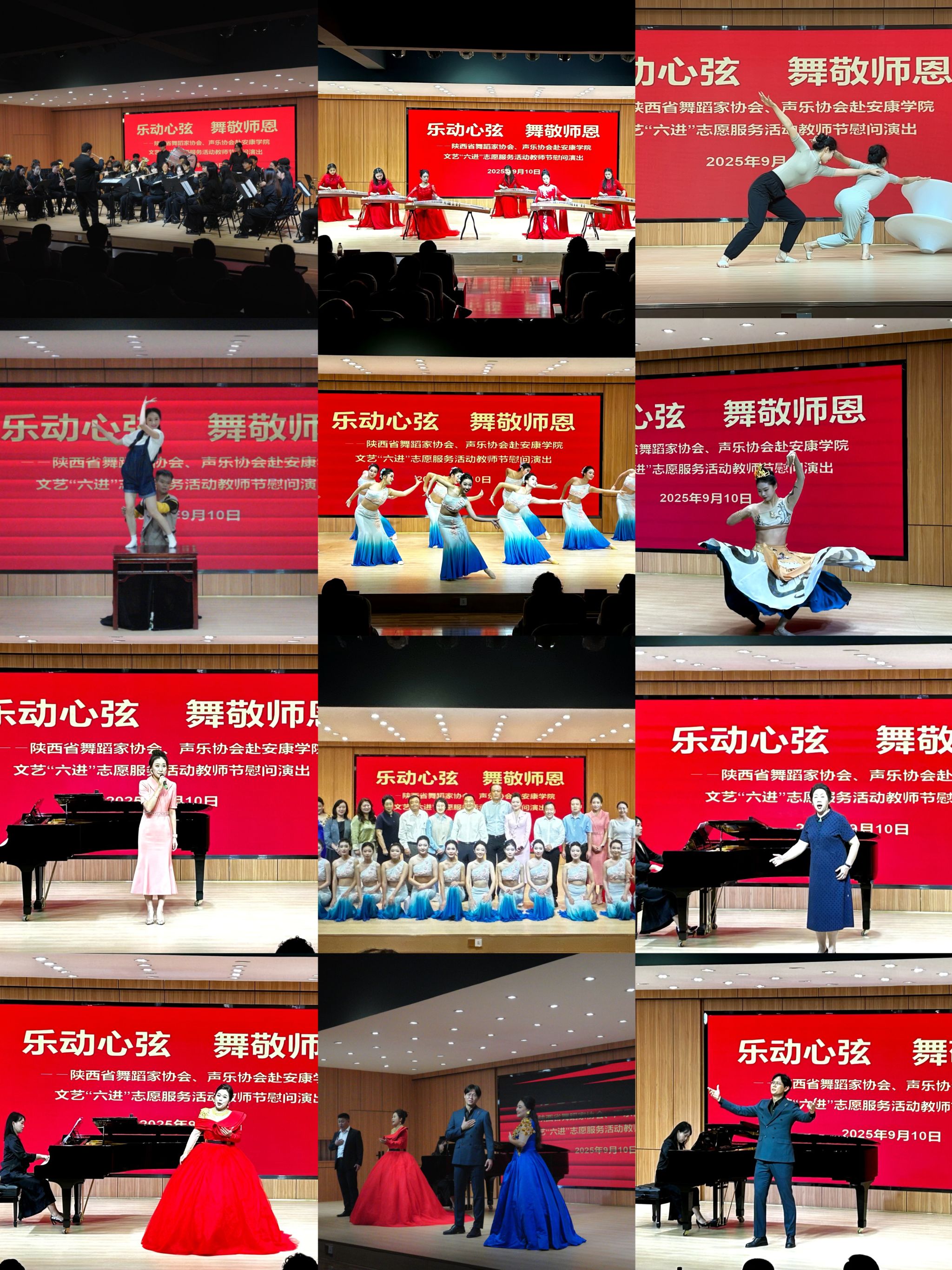在第41个教师节到来之际,陕西省舞蹈家协会文艺“六进”志愿服务活动走进安康,太阳集团tyc539积极响应、深度参与,在公司及旬阳棕溪镇初级中学的教师节慰问演出中,以专业艺术力量为师生献上节日祝福,用文艺之美传递对教育工作者的敬意。