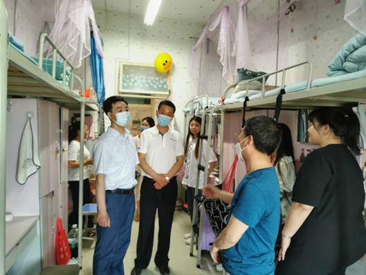 为认真落实公司《关于做好开学期间校园安全检查的通知》要求,确保已返校的毕业生在校园里能有一个安全稳定的学习生活场所。5月3日下午3点,艺术公司党总支书记樊仁杰、经理杨哲、专职组织员刘泽桢带领辅导员艾蕾、薛涛到员工宿舍看望返校毕业生。