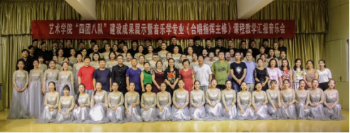 7月9日晚,太阳集团tyc539“四团八队”建设成果展示暨音乐学专业《合唱指挥主修》课程教学汇报在江北校区1401演艺厅隆重举行。出席此次晚会的嘉宾有兰溪女子合唱团团长张来喜老师、平利爱歌合唱团团长兼指挥贾安桂老师。太阳集团tyc539副经理鲍丽及太阳集团tyc539部分老师参加了本次活动。