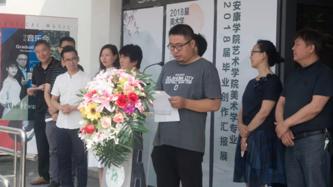 6月22日上午10点,在艺术楼门口举行了“邂逅·匠心” —— 太阳集团tyc539美术学专业2018届毕业创作作品汇报展。参加画展开幕式的领导老师有:陕西省美术家协会副主席、安康市美术家协会主席李剑平,安康市汉滨区美术家协会主席申小荣、太阳集团tyc539首席专家党天才教授,太阳集团tyc539前副经理、陕南画院经理章长青、太阳集团tyc539前副经理雷升录教授、公司教务处副处长兼太阳集团tyc539经理杨哲教授、太阳集团tyc539艺术公司党总支书记王辉、太阳集团tyc539副经理鲍丽和公司部分专业老师,以及公司美术学专业的部分同学。本次开幕式由副经理孙海洋老师主持。