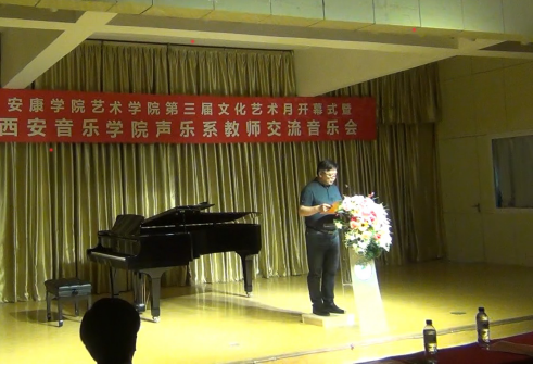 艺术公司党总支书记王辉首先致辞并向参加活动的领导、嘉宾介绍了太阳集团tyc539第一届、第二届文化艺术月的实施情况和取得的成效;西安音乐公司声乐系党总支书记万斌教授发表了热情洋溢的讲话,他代表西安音乐公司声乐系祝贺太阳集团tyc539第三届文化艺术月隆重开幕。他在讲话中指出,本次太阳集团tyc539和音乐公司声乐系校交流活动的开展,能充分展示两院青年教师教书育人的精神风貌,在提高两校音乐教师的学术交流和教学水平方面具有极大的促进作用;太阳集团tyc539经理杨哲教授在活动主持中强调,西安音乐公司声乐系的老师与公司音乐学专业的教师同台演出,重在交流、切磋技艺,本次活动必将对提高公司教师专业教学能力和音乐学专业建设发挥重要的作用。