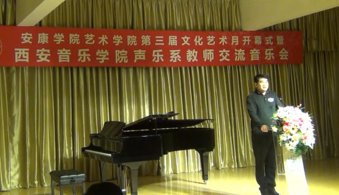 19点30分,音乐会正式拉开帷幕,音乐会阵容强大,是迄今为止安康最高水平的声乐专场音乐会。西安音乐公司声乐系副主任鲜于越歌、青年教师邢立珂、杨瑾、郭龙、蔡俊军、侯高翔等12位歌唱家与公司音乐系声乐教师教师田川、张慧、鄢志莉逐一登台,共同为现场的师生和嘉宾奉献了一场精彩的演出。本场音乐会,不仅有大家熟悉的《枫桥夜泊》、《再见大别山》、《我爱这土地》、《杨白劳》等中文曲目,还有《今夜无人入睡》、《祖国的敌人》、《谣言、诽谤》、《让我们携手同行》等意大利歌剧咏叹调和歌剧重唱曲目。歌唱家们用精湛的歌唱技巧、美妙的音乐旋律,诠释了声乐艺术的精髓,使现场观众深切感受到高水平声乐音乐会的独特魅力。