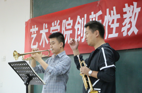 本次创新课程采用一对一教学,讲授与示范相结合的教学方式。在同学掌握基本的小号演奏技巧的同时,比较贴切地表达出音乐的情感,从而整体提高员工的演奏水平;注重对音乐的表达,对情感的把握,增加员工实践能力,循序渐进。