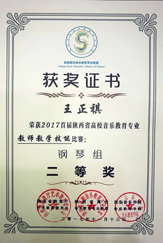 11月13日,公司田川、王正祺两位老师在陕西省教育厅艺术教育委员会主办、西安音乐公司承办的2017首届陕西省高校音乐学专业教师教学技能比赛中分获声乐组一等奖和钢琴组二等奖,体现了公司音乐学专业教师在全省高校中良好专业素质和教学能力。
