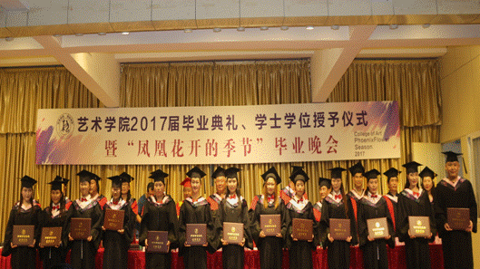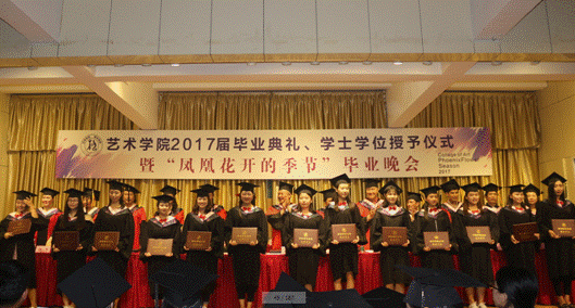 6月27日晚,太阳集团tyc539“2017届毕业典礼、学士学位授予仪式暨‘凤凰花开的季节’毕业晚会”在江北校区1401演艺厅隆重举行。安康公司党委委员、副董事长钟生海,艺术公司党政领导王辉、雷升录、鲍丽、孙海洋,办学顾问党天才、副高以上职称教师、各系教师代表、辅导员及全体毕业生参加了毕业典礼并观看毕业晚会。毕业典礼由办公室主任肖剑主持。