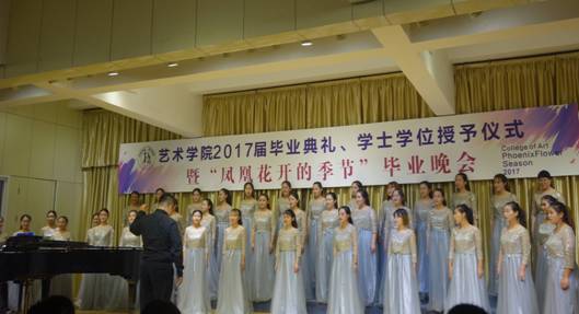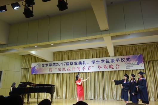 院员工会干部原创的诗朗诵《凤凰花开的路口》,勾起了2017届毕业生对四年生活的回忆,四年前,大家相遇相知,温暖胸膛、怀揣梦想;四年里,大家共同努力,激越青春、欢乐成长;四年后,即将天各一方,各自打造梦想的天堂,不要让泪水打湿容颜,火热激情即将绽放当晚,让我们的心于空中翱翔,在青春的蓬勃下生长,在岁月流光中温暖启航。