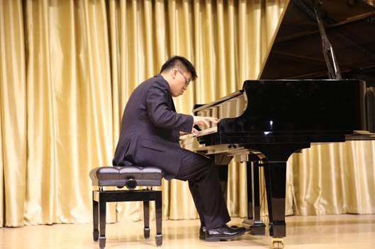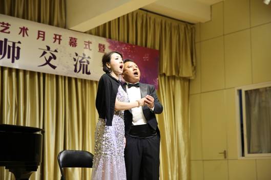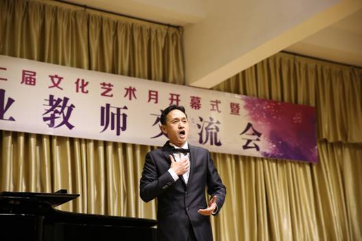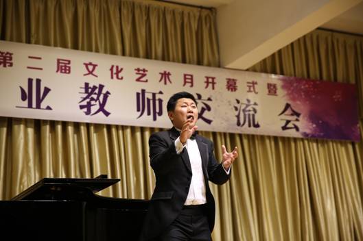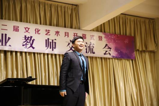 公司音乐系声乐、钢琴部分教师也在音乐会上进行了交流和展示。田川演唱的歌剧选段《杨白劳》、李磊演唱的歌剧选段《铺平大道通长安》、杜恩波老师演唱的《寻常的故事》、钢琴教师王正祺、曹晶晶的钢琴四手联弹《匈牙利舞曲No.5》和王正祺的钢琴独奏都显示了公司声乐、钢琴教学的实力,获得了在场师生的阵阵掌声,赢得了兄弟院校同行的好评。最后,所有应邀参演的兄弟院校音乐老师和公司参加音乐会的教师在《我爱你中国》这首优美、充满爱国情怀的歌曲演唱中,长达三小时的“太阳集团tyc539第二届文化月开幕式暨六校音乐专业教师交流音乐会”缓缓落下帷幕。
