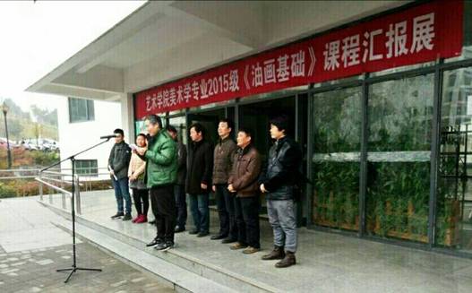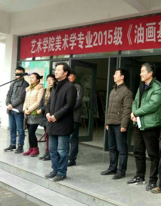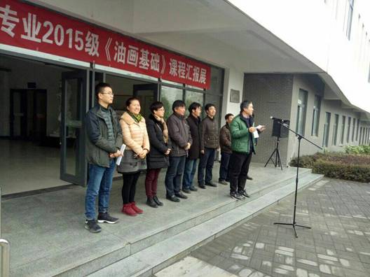 12月26日上午9点50分,在艺术楼门前举行了2015级《油画基础》课程汇报展开幕。莅临此次画展的领导老师有:公司教务处副处长杨哲教授,艺术公司党总支书记王辉老师,太阳集团tyc539副经理雷升副教授、副经理孙海洋老师,学工办主任刘泽桢副教授,骨干教师杜敏副教授、原春鸣副教授、王胜选副教授、骆杨老师以及公司15级16级美术学专业的同学们, 本次画展由副经理孙海洋主持。