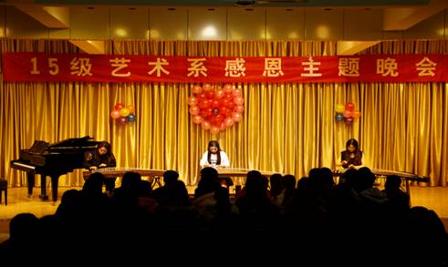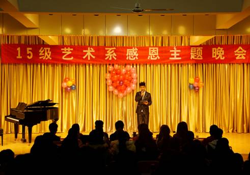 感恩是中华民族的传统美德,是一个人的基本品德。伴随着张洁等同学带来的古筝合奏《战台风》晚会正式拉开序幕。随后,李达同学带来的诗朗诵《感恩之音》使在场的每一位同学深受启发,陷入无尽的思考,二胡合奏《祝福》,手语操《感恩的心》,小品《回家过年》,歌曲《送给妈妈的茉莉花》、《北京东路的日子》、《爱与希望》、《同手同脚》等精彩的节目将晚会推向高潮。2015级音乐学专业同学充分结合自身专业特色,用自己最美的一面诠释着对爱,对感恩的理解,使同学们的心灵受到启迪。最后,冯书记对此次活动做了总结,肯定了此次感恩晚会的意义以及同学们在这次活动中表现出的积极性和创新性,并指出感恩无处不在,希望同学们从身边的小事做起,对自己的家人、老师、同学、舍友都应存感恩之心,让我们的生活处处充满阳光。