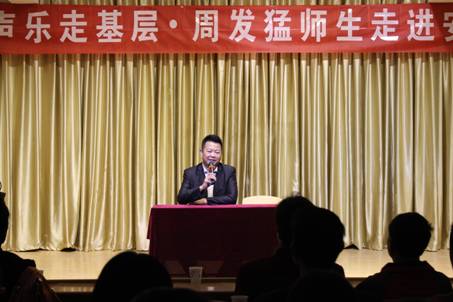10月10日上午10点,中国海政文工团安康籍著名男高音歌唱家周发猛先生携其员工在我系演艺厅,与我系音乐专业师生进行了声乐演唱交流活动,并结合自己的教学经验,对我系员工进行了现场教学指导。