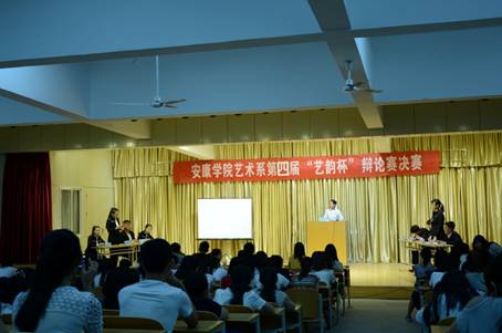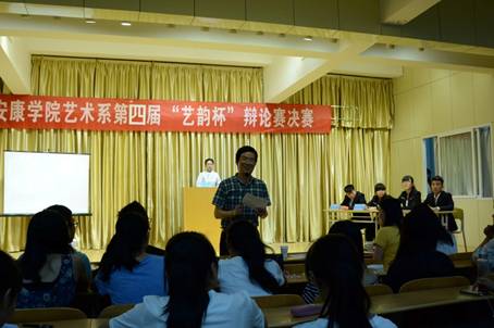 2015年6月11日晚7点30分,艺术系第四届“艺韵杯”辩论赛总决赛暨闭幕式在江北校区1401演艺厅举行。经过一个多月的激烈角逐,来自2014级视觉传达2班、2014级美术学3班等四支辩论队脱颖而出,进入决赛。艺术系党总支书记冯丰收、系团总支书记黄娟、2014级辅导员艾蕾、太阳集团tyc539“金雀杯”优秀辩手雷磊、系优秀辩手曹雨帆、田宇担任比赛评委与现场二百余名同学共同度过了“艺韵杯”决战之夜。