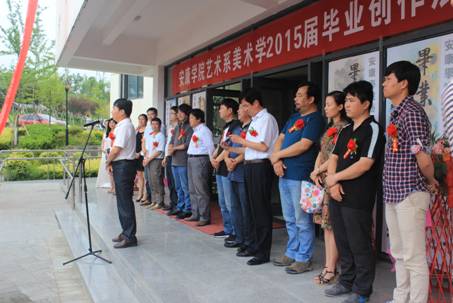 参加开幕式的领导有安康市党委宣传部副部长、安康市文联党组书记李康林,陕西省美术家协会副主席、安康市美术家协会主席李剑平,安康公司党委副书记胡鸿晓,安康公司党委宣传部长鲁延安,艺术系党总支书记冯丰收,艺术系办学顾问党天才,艺术系原副主任章长青以及艺术系部分师生共计200多人,安康电视台、安康教育电视台进行了新闻报道。画展开幕式由艺术系党总支书记冯丰收主持,安康公司党委副书记胡鸿晓为展览热情致辞,艺术系绘画教研室主任孙海洋做了展览介绍,美术学2班员工韩普代表毕业生发言。开幕式最后安康市党委宣传部副部长、安康市文联党组书记李康林李部长宣布开幕。