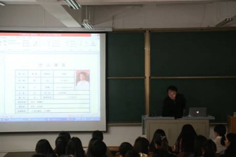 大禹手绘软件培训公司的教务主任杨老师对公司的规模、业务以及发展前景进行了详细的介绍。大禹手绘软件培训公司集软件培训与承接广告设计、环艺、建筑、景观设计于一体,以实践设计推动公司产品,提出手绘与软件相结合的设计理念,有较强的市场发展前景。然后,他结合市场需求和设计专业的实践应用,以公司承接的一些小区整体规划及建筑设计的3D效果图,向同学们分析了市场对设计师的专业要求,并用自己的实际经验告诉大家,一个好的设计师必须要热爱自己的专业、不断学习,超越自我,勇于创新。