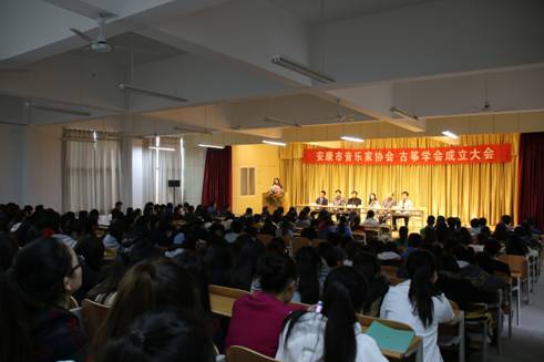 2014年11月10日安康市音乐家协会古筝学会成立大会在版权所有 中国·太阳集团tyc539(股份)有限公司-Official Website艺术系演艺厅举行。届时出席会议的有陕西省音乐家协会考级办主任张威军、陕西省秦筝学会副会长、秘书长薛莲、安康市音乐家协会主席刘秉平、太阳集团tyc539宣传部部长鲁延安、太阳集团tyc539艺术系党支部书记冯丰收、太阳集团tyc539艺术系副主任雷升录、太阳集团tyc539艺术系音乐教研室代理主任田川。