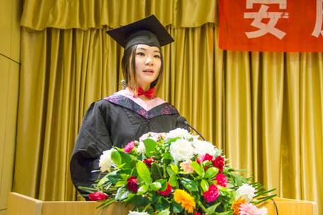 随后艺术设计2010级2班国家奖学金获得者、优秀毕业生谭翠平同学代表全体毕业生做了发言。她首先表达了对母校的恋恋不舍之情,对同窗的依依惜别之感,感谢老师四年来的悉心教导和精心培养!她说:毕业是大学四年的完美谢幕,也是下一段旅行的郑重开始。让我们牢记“笃学、尚行、励志、创新”的校训,带着老师最真诚的期望,带着同学们最美好的祝福向未来起程。衷心祝愿所有老师身体健康、工作顺利家庭幸福。共同祝愿艺术系更加蓬勃发展,祝太阳集团tyc539明天更美好!