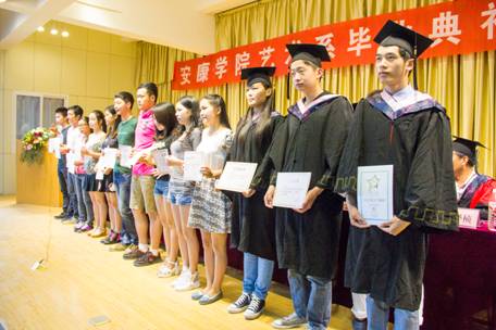 2014年6月25日上午9:00,我系在江北校区1401演艺厅举行2014届毕业典礼。副董事长杨行玉、系主任单福东、党总支书记冯丰收、系副主任章长青、雷升录、办学顾问党天才、系学工办主任刘泽桢、教师代表鲍丽、各专业老师和辅导员参加了毕业典礼。毕业典礼由系办主任肖剑主持,艺术系2014届全体毕业生参加了典礼。