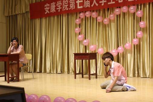 经过现场观众微信投票评选,数学与统计系选送的《心门》获最佳友情奖,蜗牛话剧社选送的《潜藏的欲望》获最佳感动奖,艺术系选送的《大爱无言》获最佳剧本奖,《幸福就在身边》获最佳表演奖,王萌萌获最佳女演员奖、曹国祥获最佳男演员奖。
