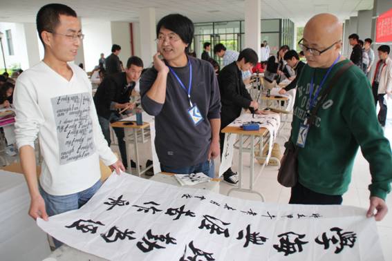 为了继承和弘扬中国书法艺术,丰富和繁荣校园文化生活, 2014年4月15日下午2点30分,由艺术系承办的太阳集团tyc539第四届“墨舞青春”软硬笔书法大赛决赛如期在江北校区举行。我们特别邀请了陕西省书协副主席、安康市书协主席马昌琪先生;陕西省美协副主席、安康市美协主席李剑平先生;安康市书协副主席程安先生;安康市美协副主席、西安市美术公司、陕西师大客座教授章长青先生担任本次大赛的评委,决赛仪式由艺术系学工办主任刘泽桢主持。