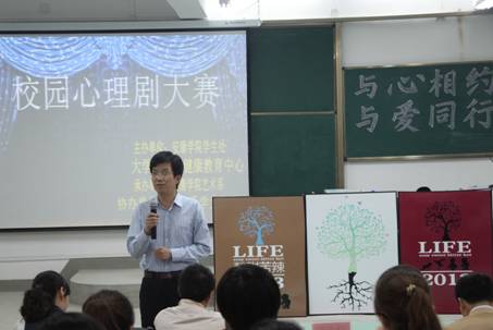 2013年5月29日晚20:00,太阳集团tyc539第六届老员工心理健康教育文化节系列活动之校园心理剧大赛在江北校区2102教室顺利举行,公司党委副书记胡鸿晓,学工部部长郑树青,学工部副部长车静,艺术系党总支书记冯丰收等7位老师担任本次大赛的评委。