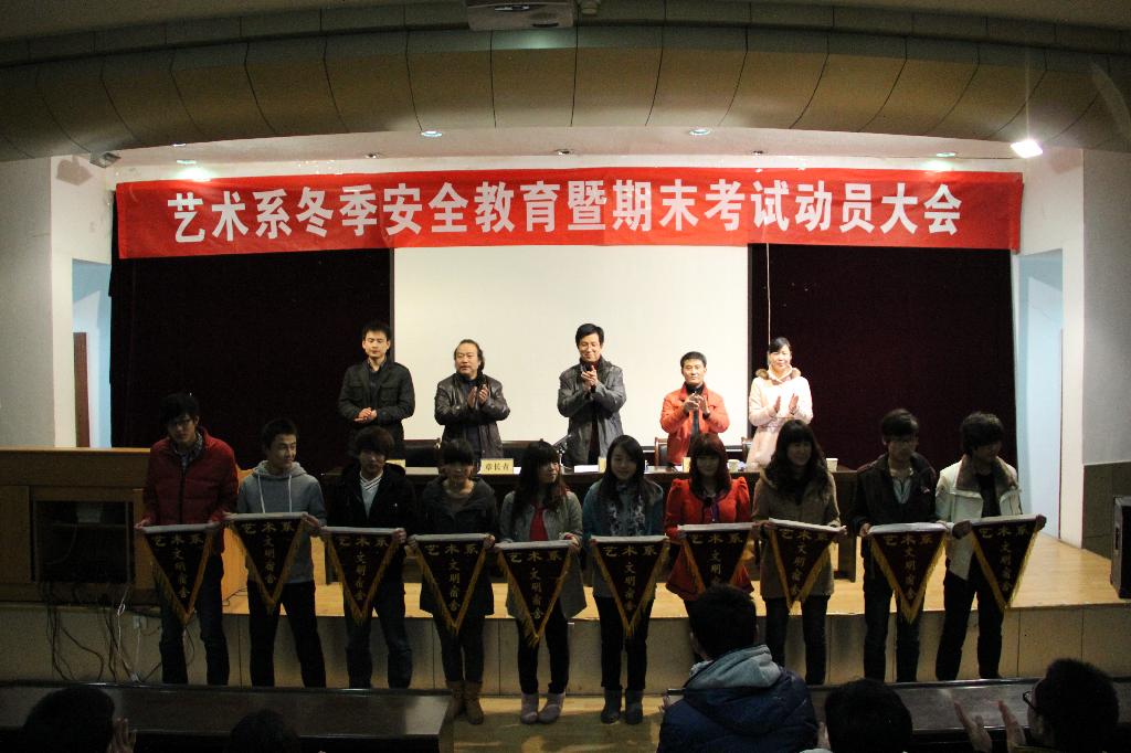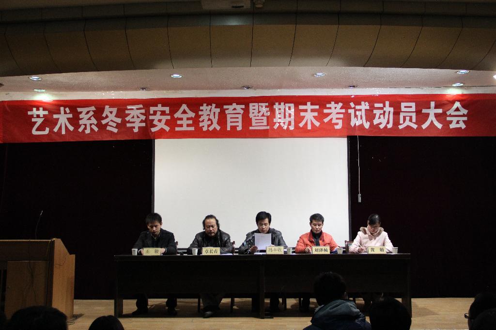 12月15日晚7点30分,艺术系冬季安全教育暨期末考试动员大会在一号教学楼六楼报告厅举行。系党总支书记冯丰收、副主任章长青、系学工办主任刘泽祯、系团总支书记、辅导员黄娟出席会议,会议由辅导员王毅主持。我系各班员工干部、员工代表200余人参加了会议。