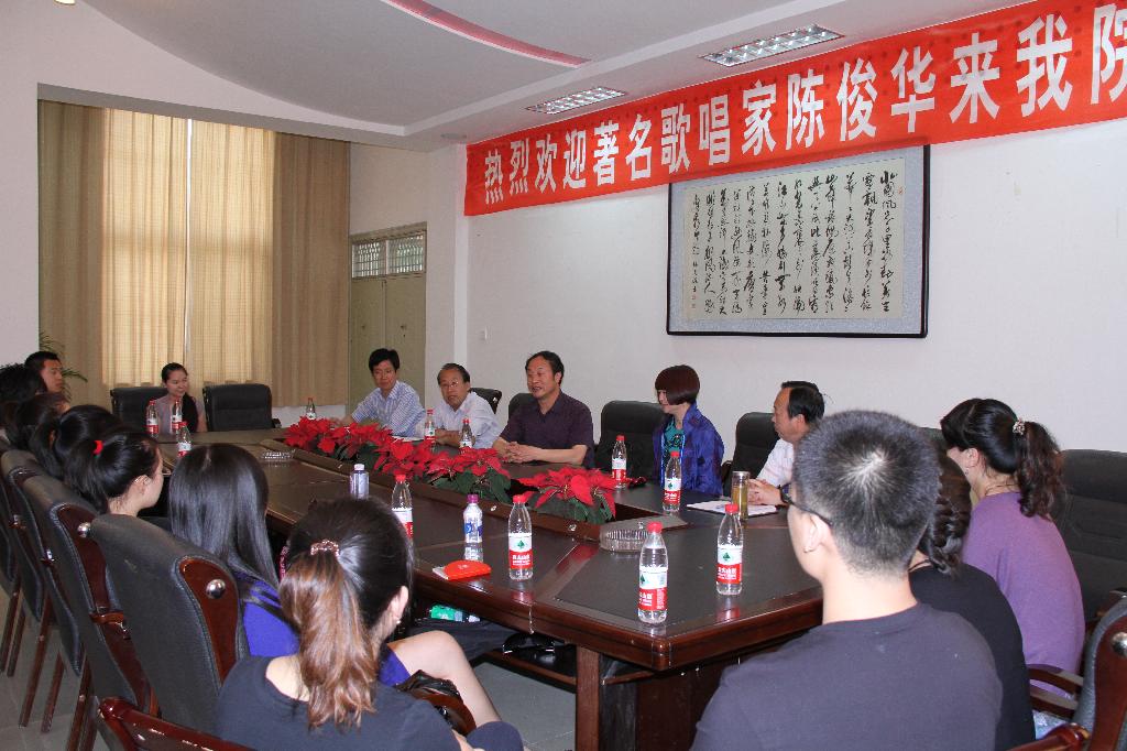 4月27日, 著名歌唱家、国家一级演员陈俊华女士到公司进行交流访问并受聘为我系客座教授,受聘仪式在西校区8号楼会议室举行。经理王兴林,人事处长罗文谦,教务处长、艺术系主任单福东,艺术系党总支书记冯丰收及艺术系音乐教研室全体教师参加了受聘仪式。仪式由单福东主持,经理王兴林教授为陈俊华女士颁发了客座教授聘书。单福东代表全系师生热烈欢迎陈俊华女士的加盟,希望陈俊华女士利用其宝贵的人脉资源,把国内外更多的名家大师请到公司,促进公司音乐专业不断发展,提高艺术人才培养质量。随后陈俊华女士与艺术系音乐教研室教师进行了座谈交流,将自己的艺术经历与大家一起分享,并即兴演唱了汉剧作品《汉江游女》。
