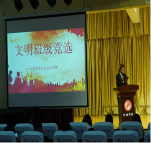 2020—2021学年度“文明班级”、“文明宿舍”评选活动的通知》精神,推进公司学风建设,规范班级管理,增强班集体凝聚力。4月8日下午,在江北校区1401演艺厅召开了2021年度文明班级评选答辩。参加本次会议的有艺术公司党总支副书记李万明、专职组织员刘泽桢、全体辅导员老师及员工代表,共计1