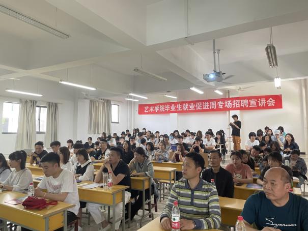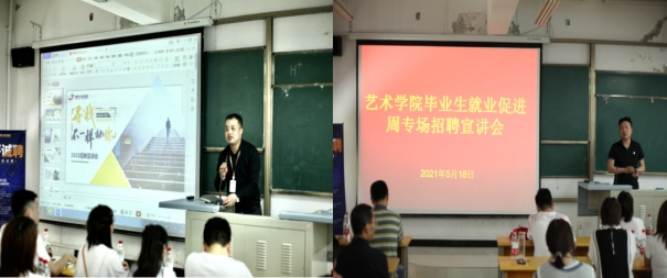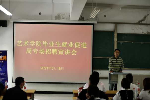 为全面贯彻落实陕西省2021届普通高校毕业生就业促进周工作精神,做好公司2021届毕业生就业指导帮扶工作,促进未就业毕业生充分就业。5月18日下午,公司在江北校区2202教室举办了2021届毕业生就业促进周专场招聘宣讲会。艺术公司党总支书记樊仁杰、副书记李万明、毕业班辅导员杨厚东、魏麟及毕业生150余人参加了招聘宣讲会。招聘宣讲会由党总支书记樊仁杰主持。