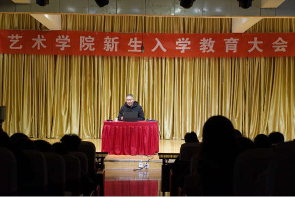 首先,孙海洋从专业特点、人才培养方案、就业前景等方面进行了详细介绍,使同学们充分了解所学专业。随后,他用《蒙娜丽莎的微笑》这幅名作,向同学们生动形象地阐述了艺术与技术之间的区别与联系,告诉同学们要把握好艺术与技术之间的关系,夯实专业功底。最后,孙海洋要求同学们从九个方面进行自我修炼,提升综合素质,即:上好思政课、英语课、专业课“三类”课;练好粉笔字、钢笔字、毛笔字“三笔”字;读好艺术美学、专业理论、专业技能“三类”书;建立温馨的亲子关系、健康的同学关系、和谐的师生关系“三种”关系;建立上课准时、睡觉按时、吃饭及时“三时”作息习惯;养成寝室干净、实训室干净、个人干净“三净”卫生习惯;坚守画室、机房、琴房“三个”地方;完成每日画一张作品、设计一个案例、练习一小时曲子“三个”日课;追求卓越、使优秀成为习惯。